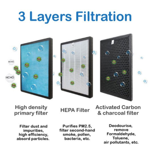 Med HEPA/KOL filtrering tar denna luftrenare bort 99,95% av alla luftburna partiklar vi har omkring oss och kan reducera de mest ohälsosamma partiklarna i våra hem med upp till 80%.